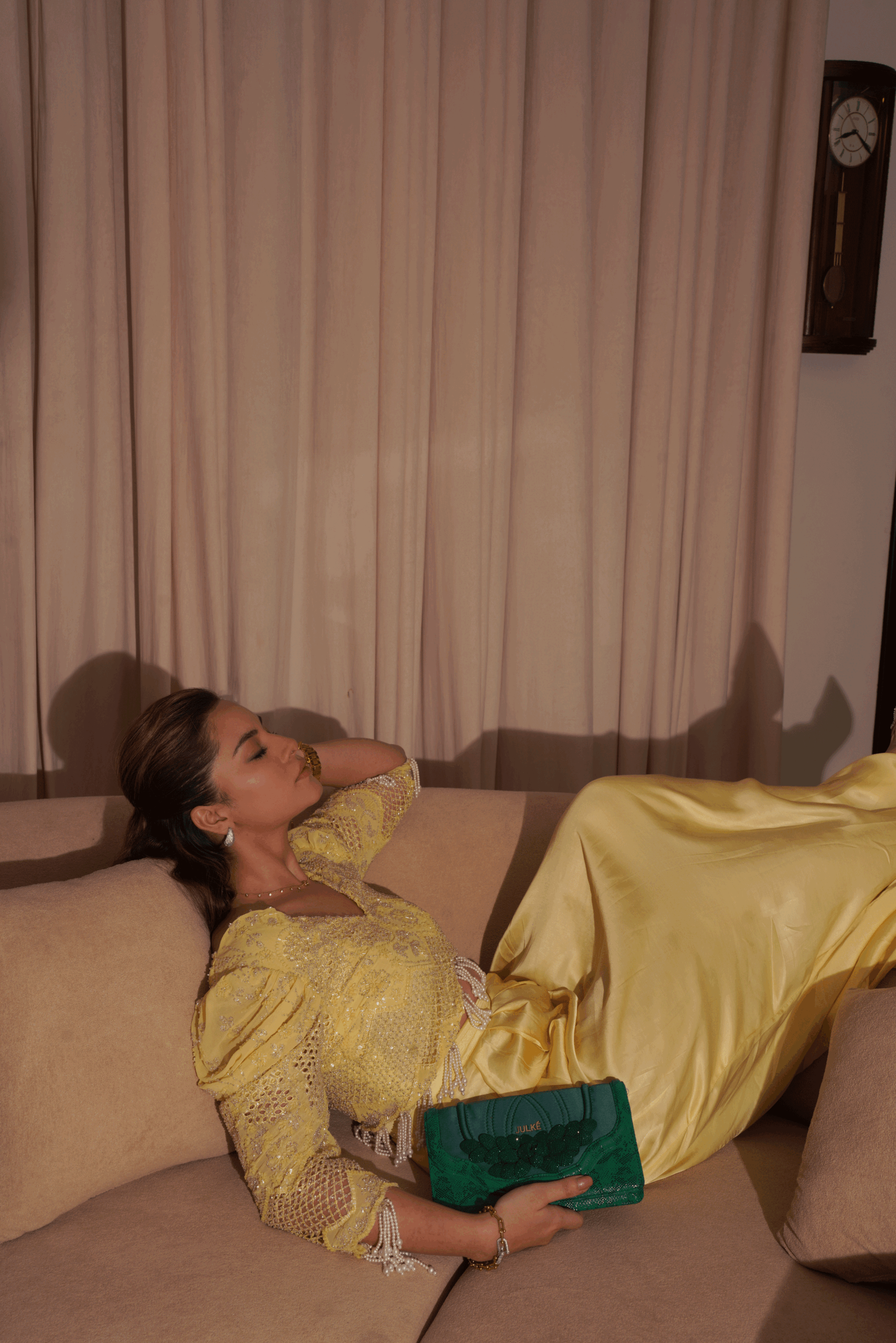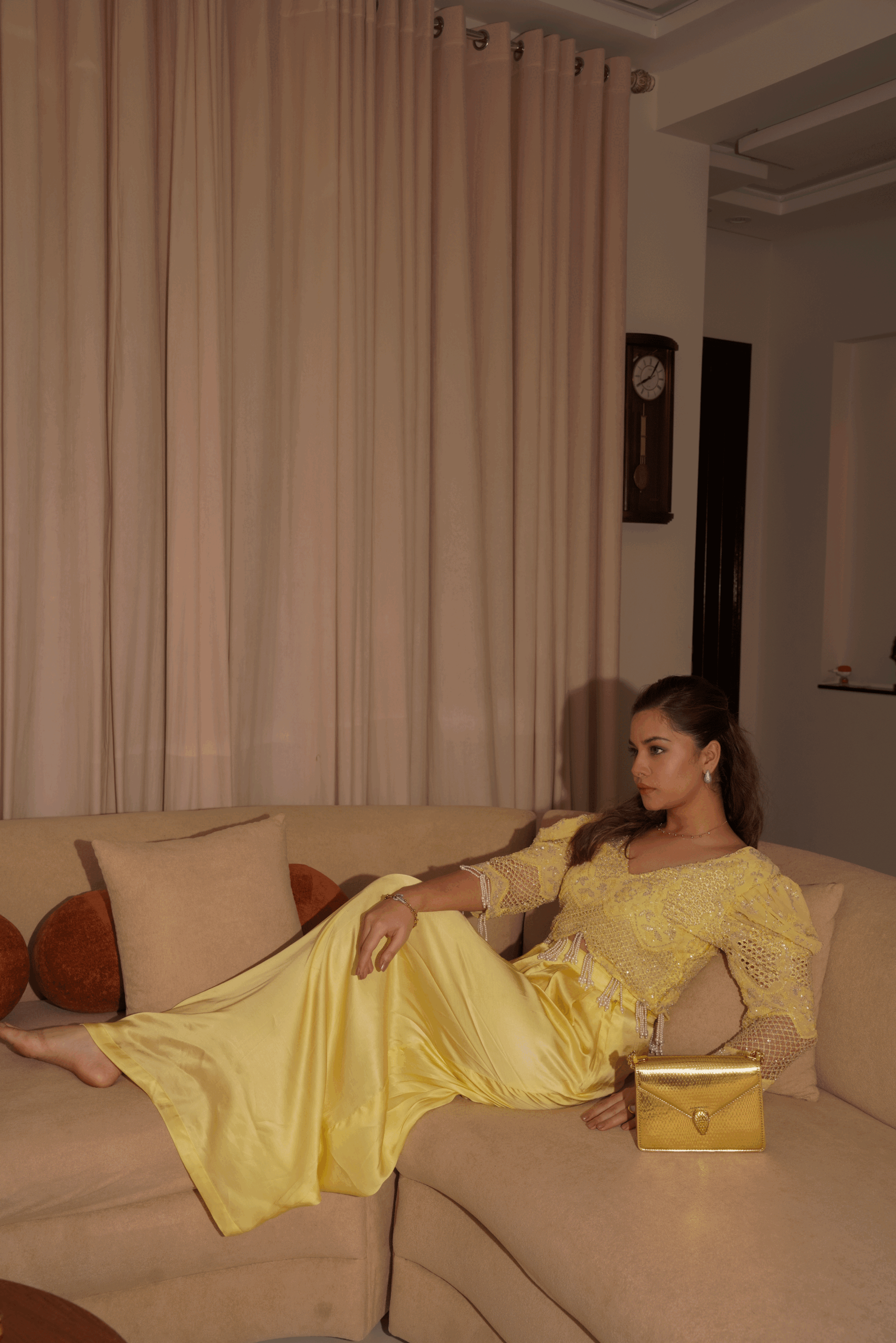 Exquisite Butter Yellow Embellished Set